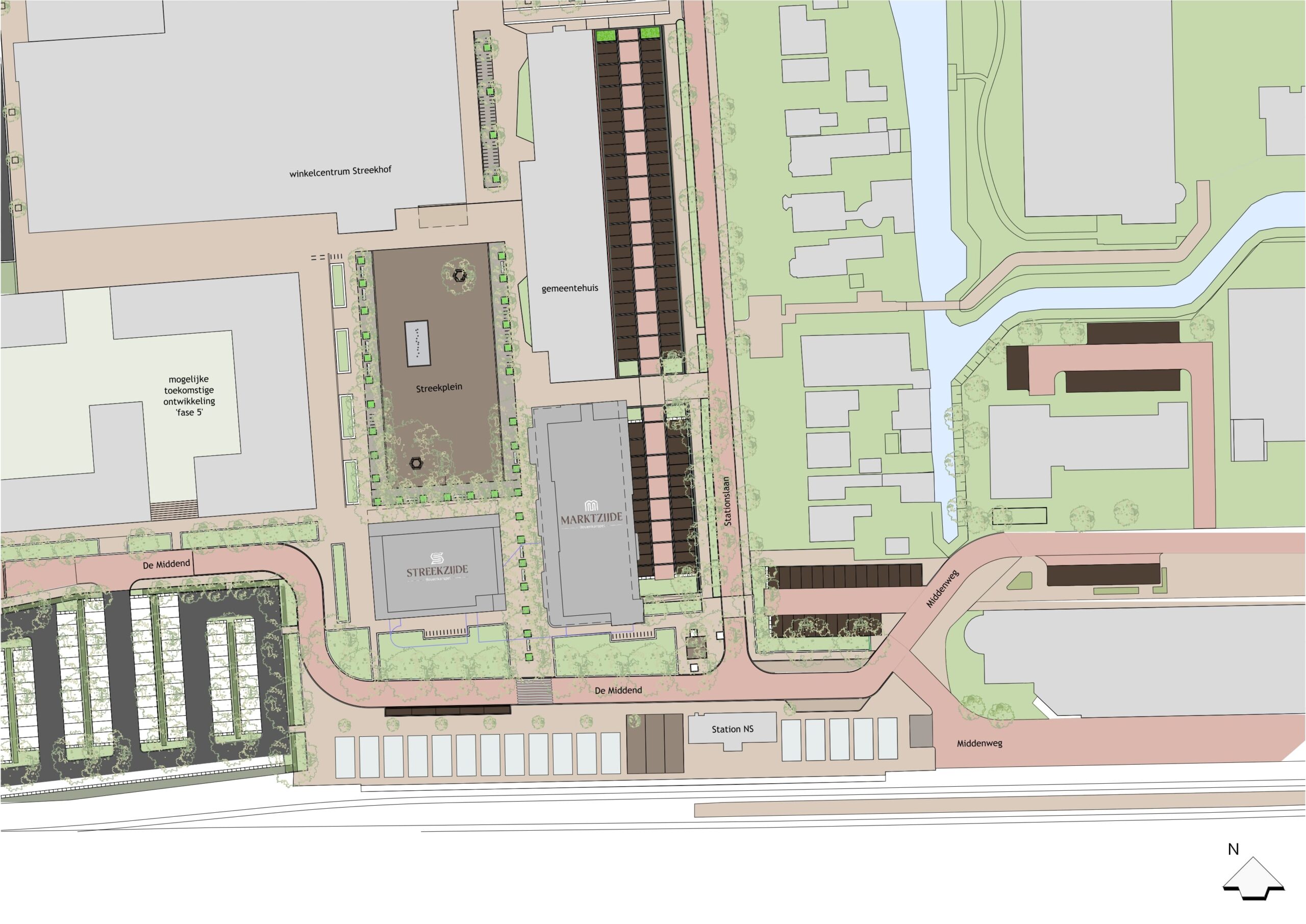 Het Streekplein wordt opnieuw ingericht tot een bruisend dorpsplein, met net als voorheen ruimte voor de weekmarkt, de jaarmarkt met Pinksteren en gezellige terrassen. Op de begane grond van nieuwe appartementengebouwen zorgen lokale ondernemers met horeca en dienstverlening voor reuring.